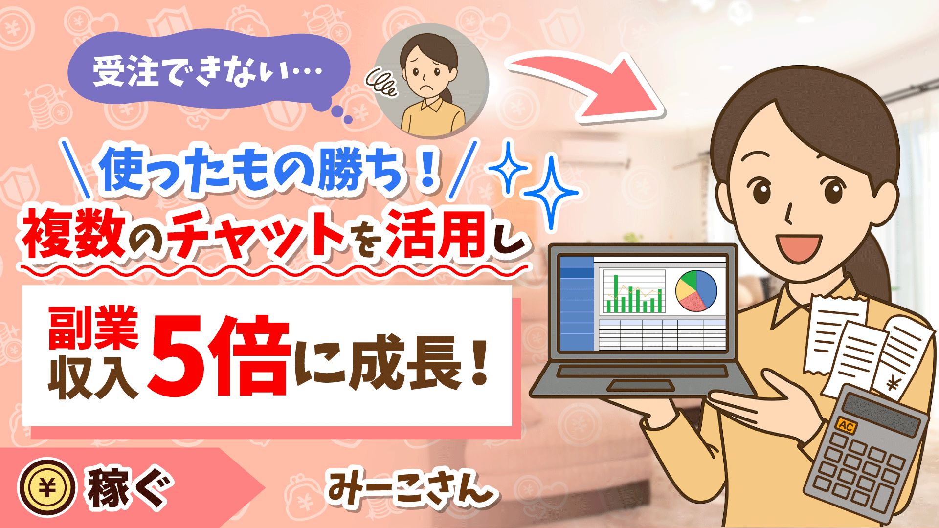 「もう少し稼げるようになりたい」と感じ、リベシティのチャットとスキルマーケットを活用。再入会からわずか4ヶ月で副業収入を月15万円まで伸ばしています。そんなみーこさんの体験談をお聞きしました。