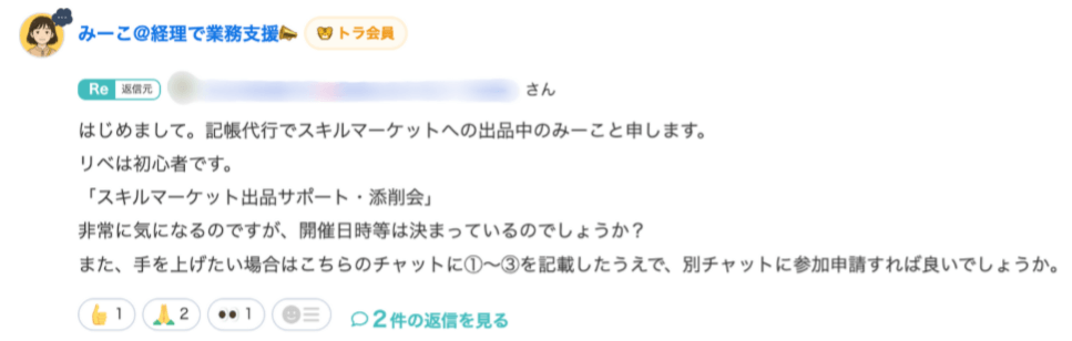リベシティのチャットで質問すると、皆さんが本当に親切に答えてくださいます。びっくりするくらい温かくて、こんなに安心して質問できるコミュニティ、なかなかないですよ。