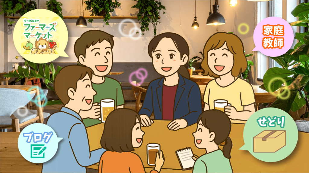 そんな時、飛び込んだのがリベシティでした。自分が住んでいる地域の支部チャット※での出会いがきっかけで、実際に顔を合わせる交流にも繋がりました。今では「信頼できる人達に囲まれ、好きな仕事に向き合える毎日にハリが生まれた」と語るエリさん。その歩みをきいてみました。