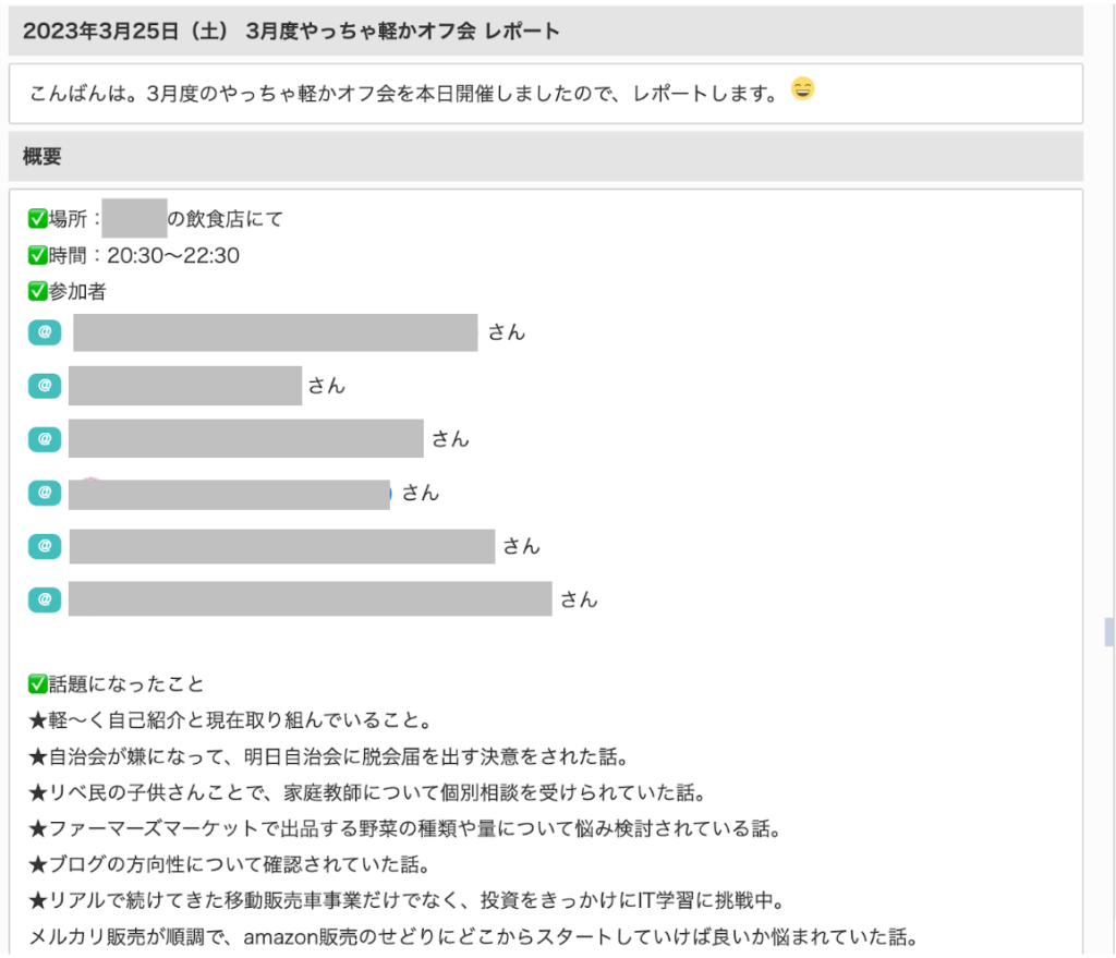 - 地域支部チャットに入って、オフ会の開催情報を調べてみる