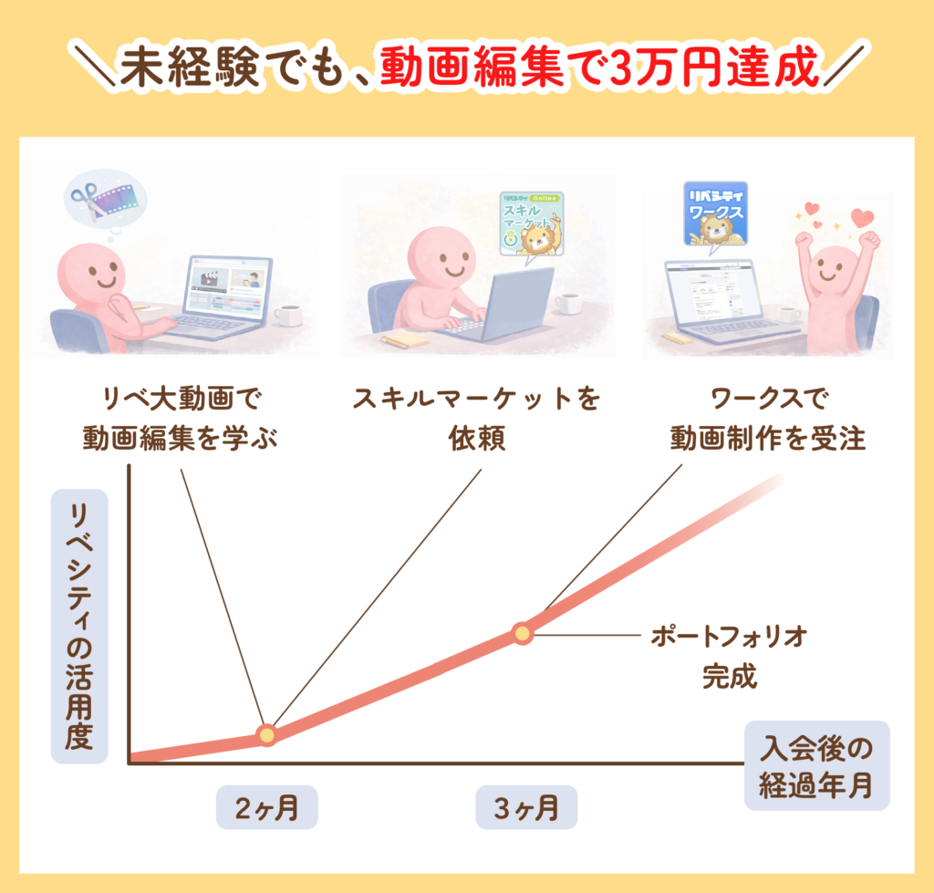 • 動画編集で、月3万円の収益を達成できた
