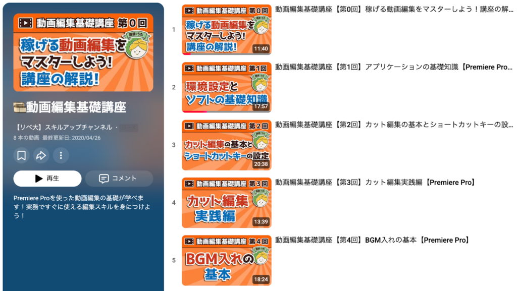 早速、リベ大スキルアップチャンネルの基礎講座で動画編集を学び始めました。