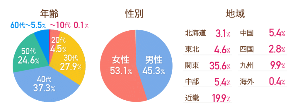 リベシティには、小学生のお子さんから70歳以上の方まで、幅広い年齢層の会員がいます。住む地域も職業も本当にさまざまですが、多くの会員が年齢や職業を超えて、教え合ったり励まし合ったりしながら活動しています。