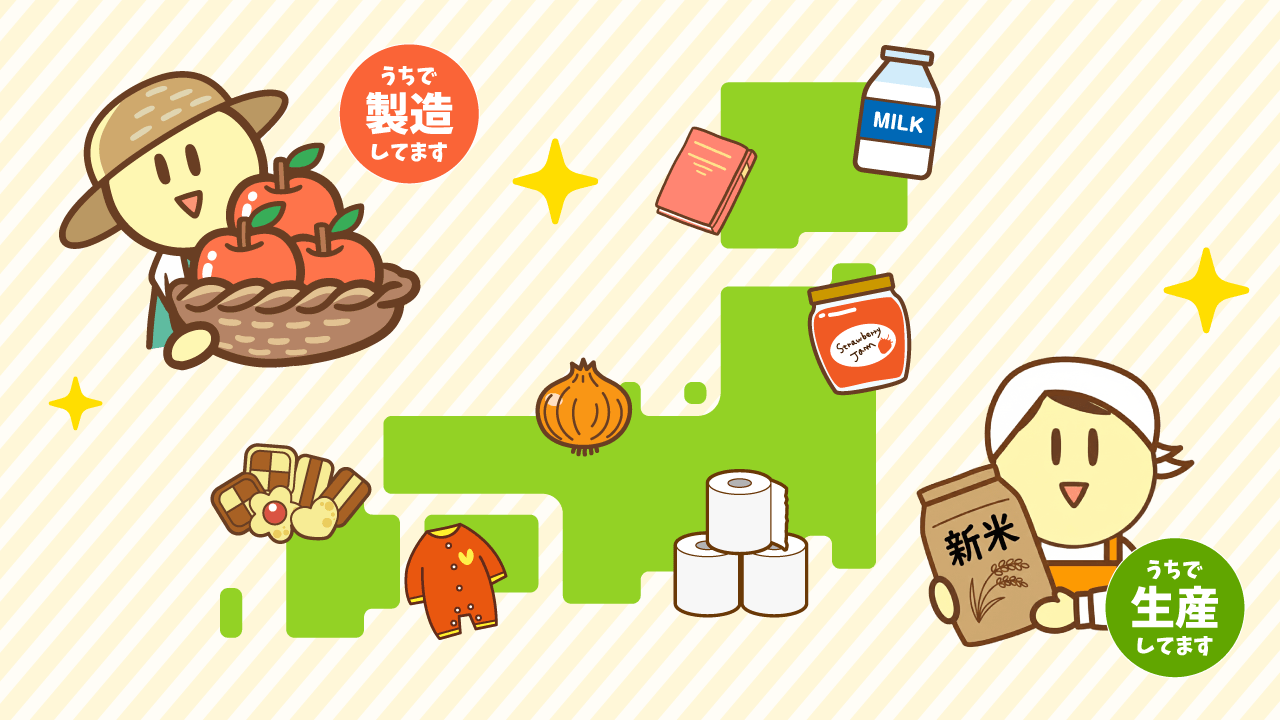「生産品」・「製造品」ラベルを目印に、想いの詰まった逸品を探してみてください。
