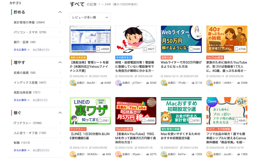 家計見直しのコツ、副業での成果の出し方、スキルアップの方法など、投稿されたノウハウを実践することで資産形成につなげることができます。