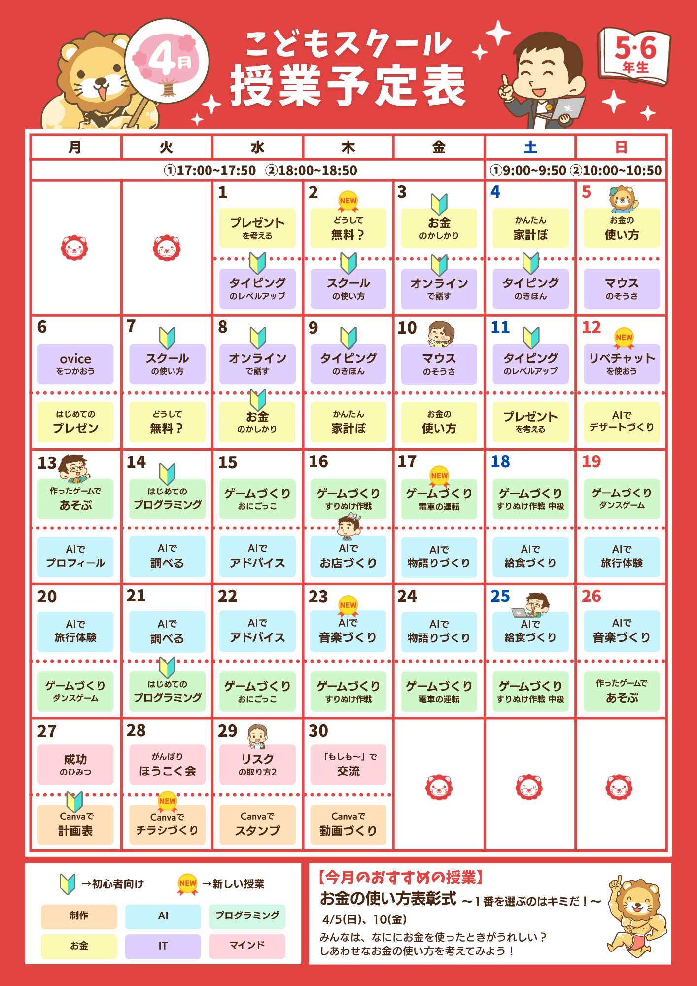小学5・6年生向け授業の予定表