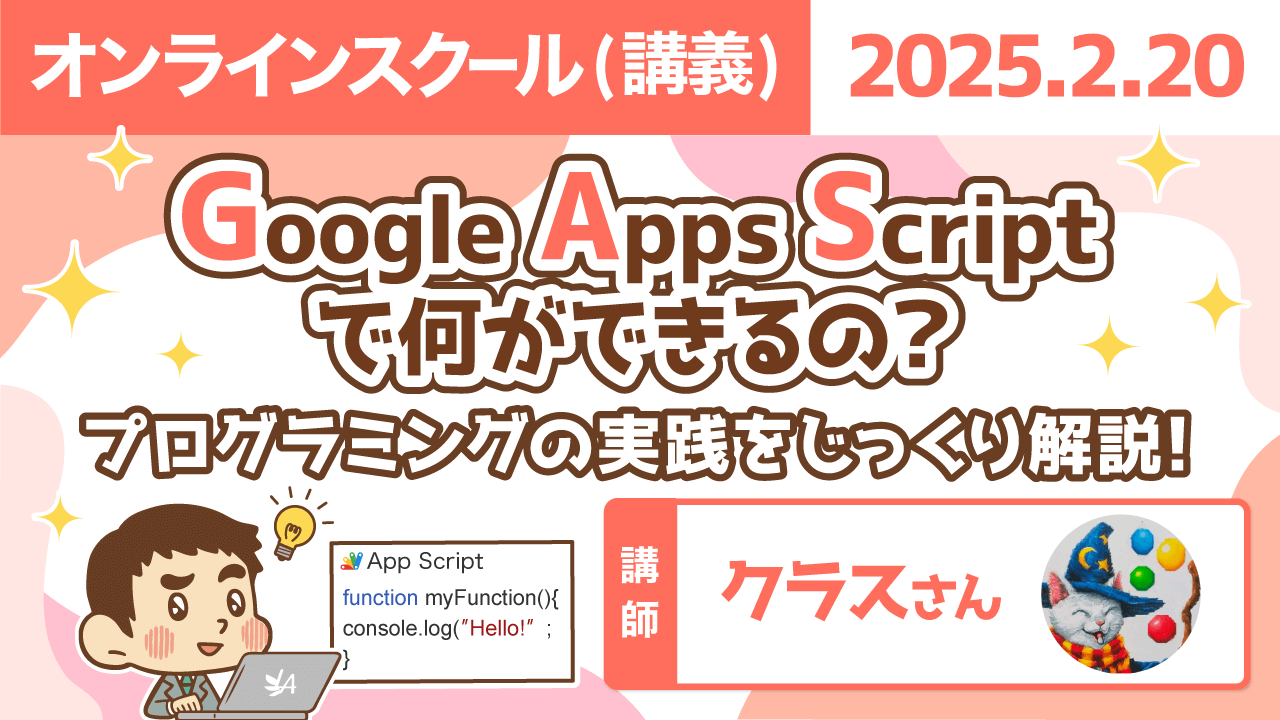 今回の講義では、GASの基本を押さえながら、プログラミングの解説に重点を置いて進めていきます💡